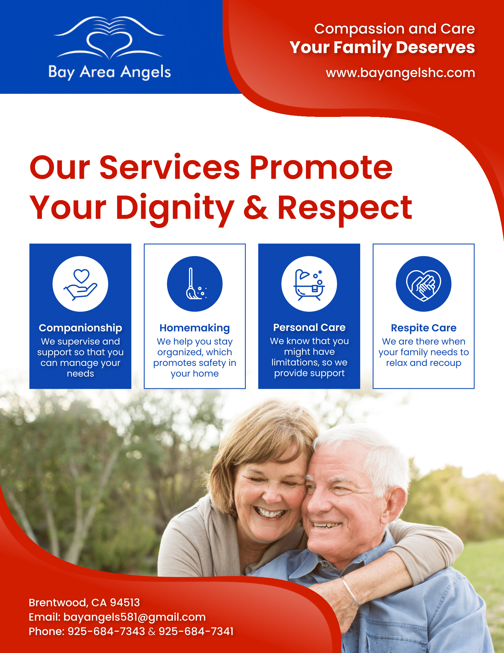 We are a home care service provider with over 20 years of experience providing exceptional assistance to seniors in Brentwood, CA. Our company is unique because we prioritize personalized care tailored to each client's unique needs. We are comprised of 2 registered nurses; we coordinate and oversee all of the care our caregivers provide, ensuring our clients receive the highest-quality care possible. At Bay Area Angels Home Care, we understand how important it is to work closely with families and clients to develop a personalized care plan that fits their needs. We encourage our clients and their chosen caregivers to meet before the start of care to ensure a good fit, and we strive for clear and effective communication throughout the entire care process. We aim to create a comfortable environment where our clients feel safe, cared for, and respected. At Bay Area Angels Home Care, we are committed to providing personalized and compassionate care to all our clients. Contact us today to learn more about our services and how we can help you and your loved ones.